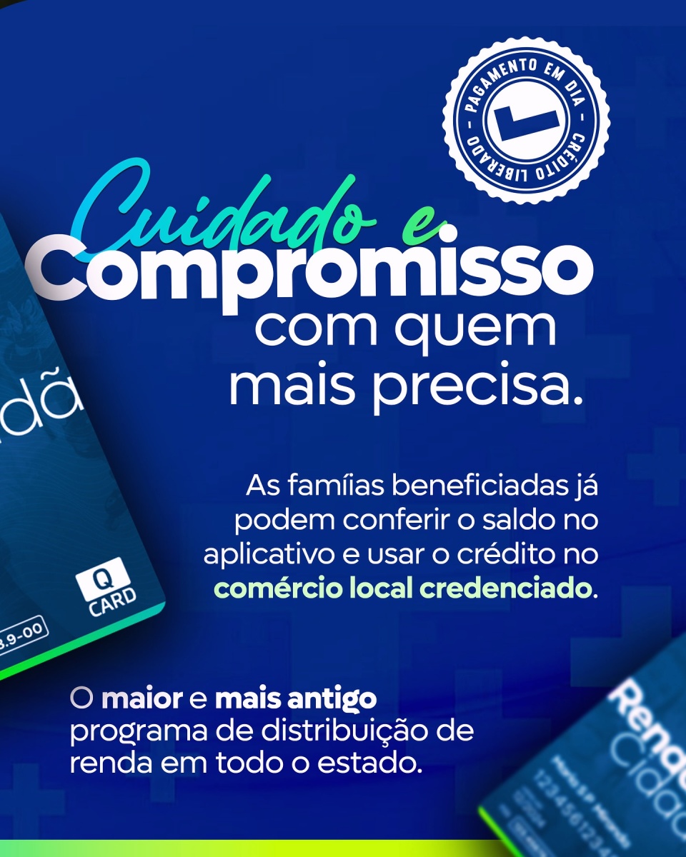 CRÉDITO JÁ TÁ LIBERADO!É cuidado e compromisso com aqueles que mais precisam através do maior e mais antigo programa de distribuição de renda do Rio Grande do Norte. É o Renda Cidadã garantindo mais dignidade às famílias beneficiadas e fortalecendo o comércio local.