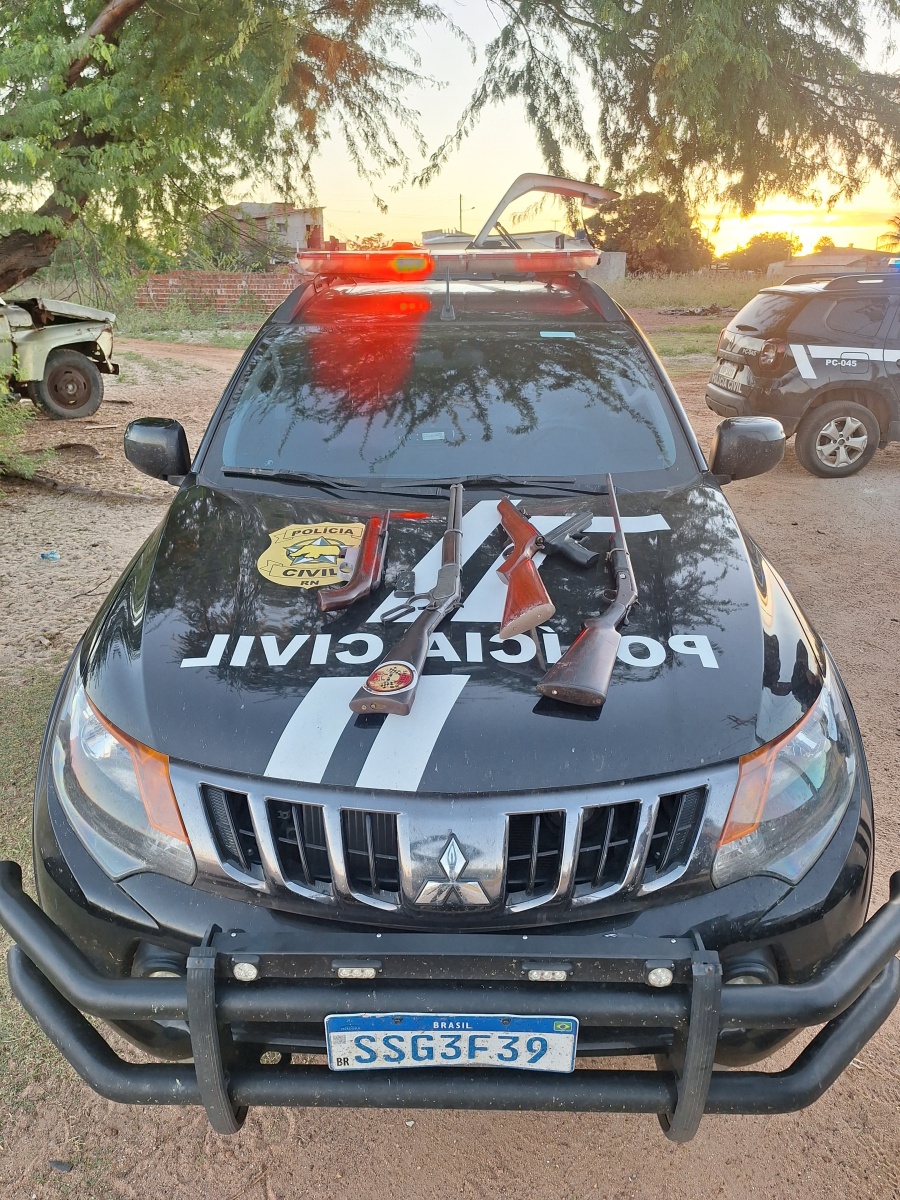 Durante a ação, o suspeito foi preso em flagrante por posse ilegal de armas de fogo. No local, foram apreendidas quatro armas: dois rifles, de calibres .22 e .32, e duas espingardas, de calibres .44 e .36, além de uma arma de pressão.