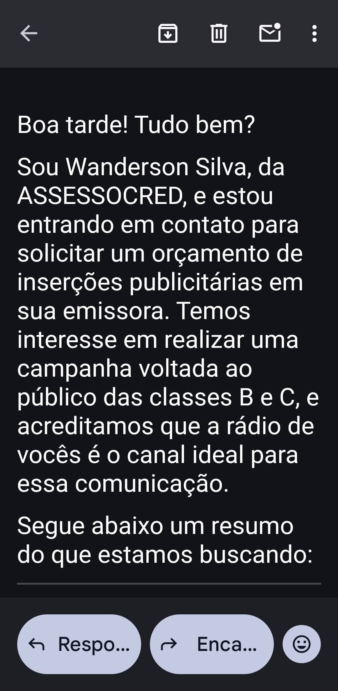 Funciona assim você recebe um e-mail solicitando um orçamento de divulgação de uma empresa de crédito, porém a empresa pede um prazo de 15 dias para fazer o pagamento da veiculação na emissora, porém depois deste período não é realizado o pagamento, e ao entrar em contato você recebe a seguinte resposta: (O financeiro irá pagar ou seja é golpe !?)