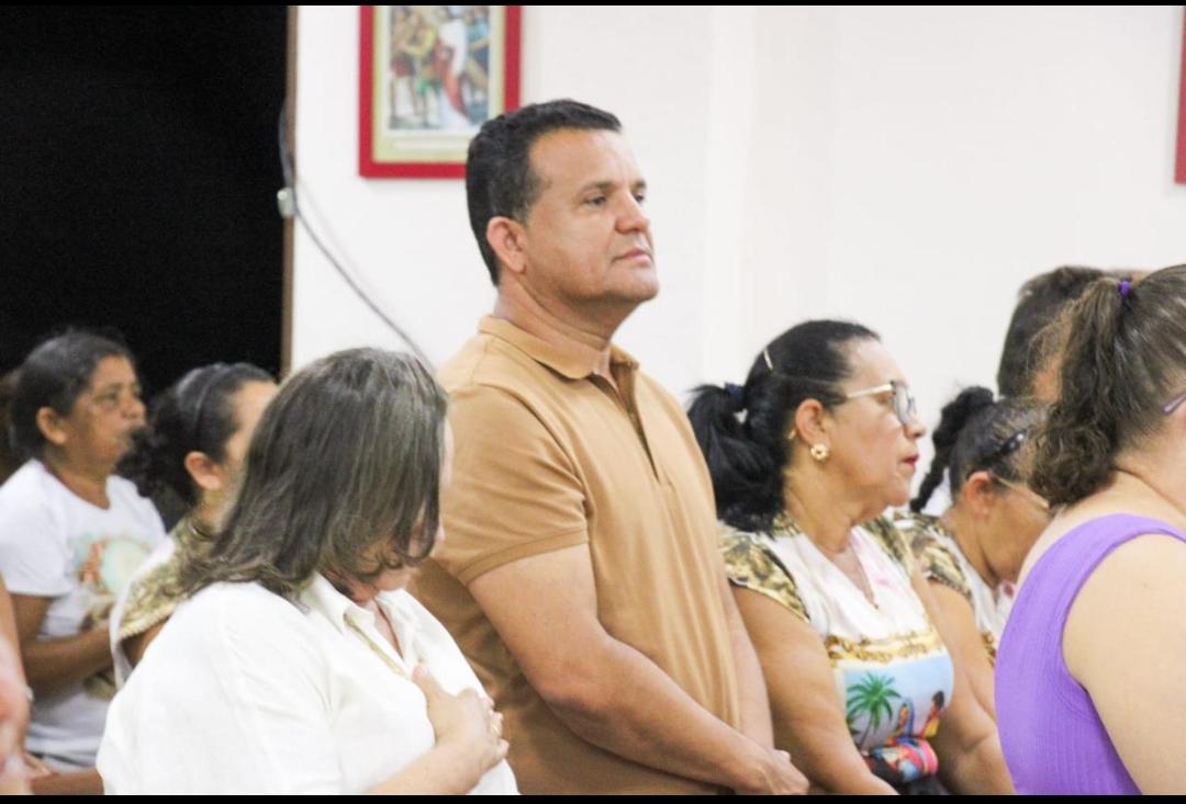 Durante toda a celebração da Santa Missa, o prefeito permaneceu ao lado de sua mãe, Maria Neves, demonstrando respeito e devoção à tradição religiosa da comunidade. Também esteve presente o secretário municipal de Segurança, Cabral, além de servidores da gestão municipal.