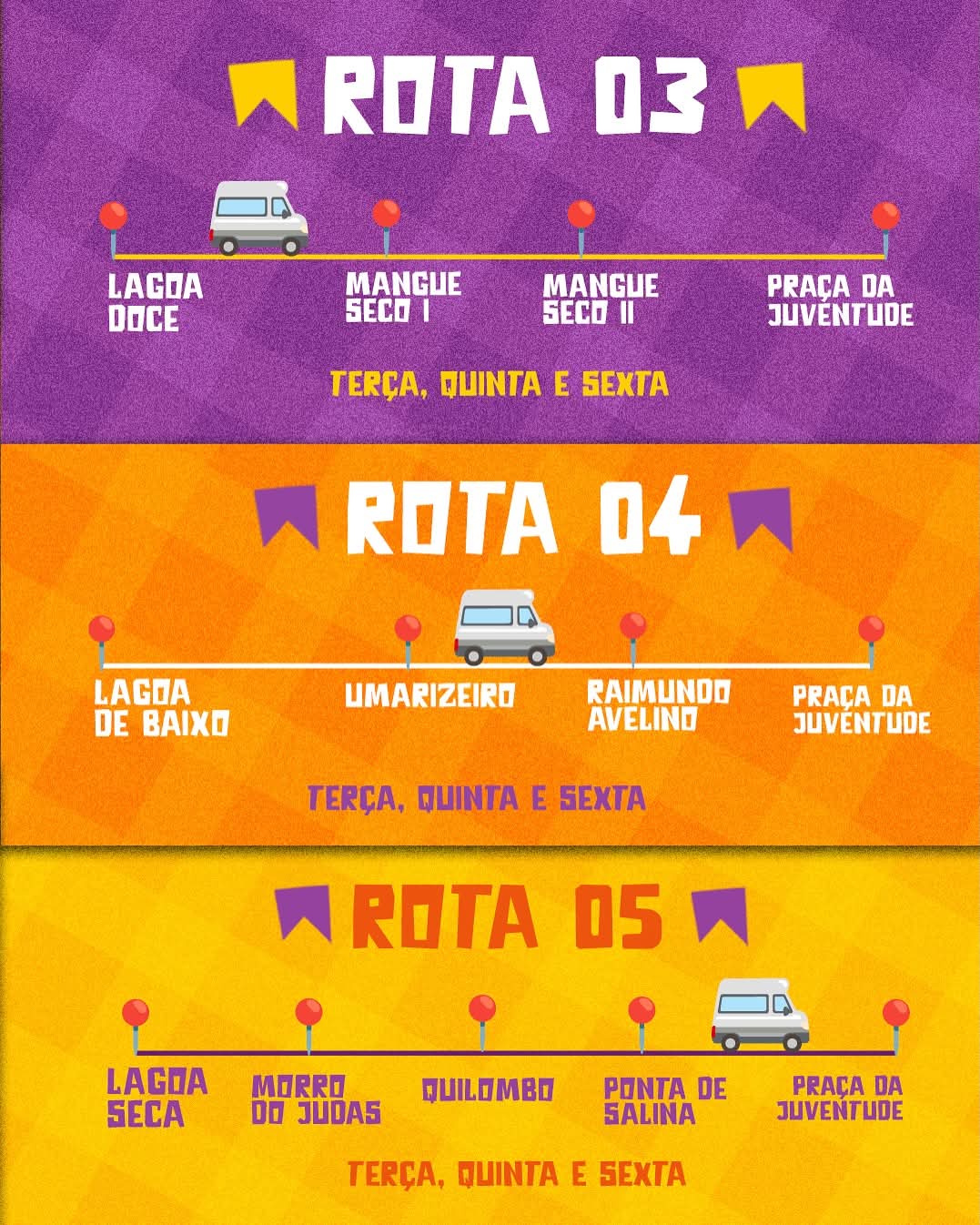 📍 São 5 rotas diferentes, com horários e dias específicos pra levar todo mundo com segurança e animação até o nosso arraiá!